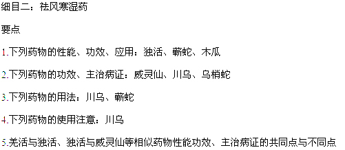 6.秦艽與防己等相似藥物性能功效、主治病證的共同點與不同點