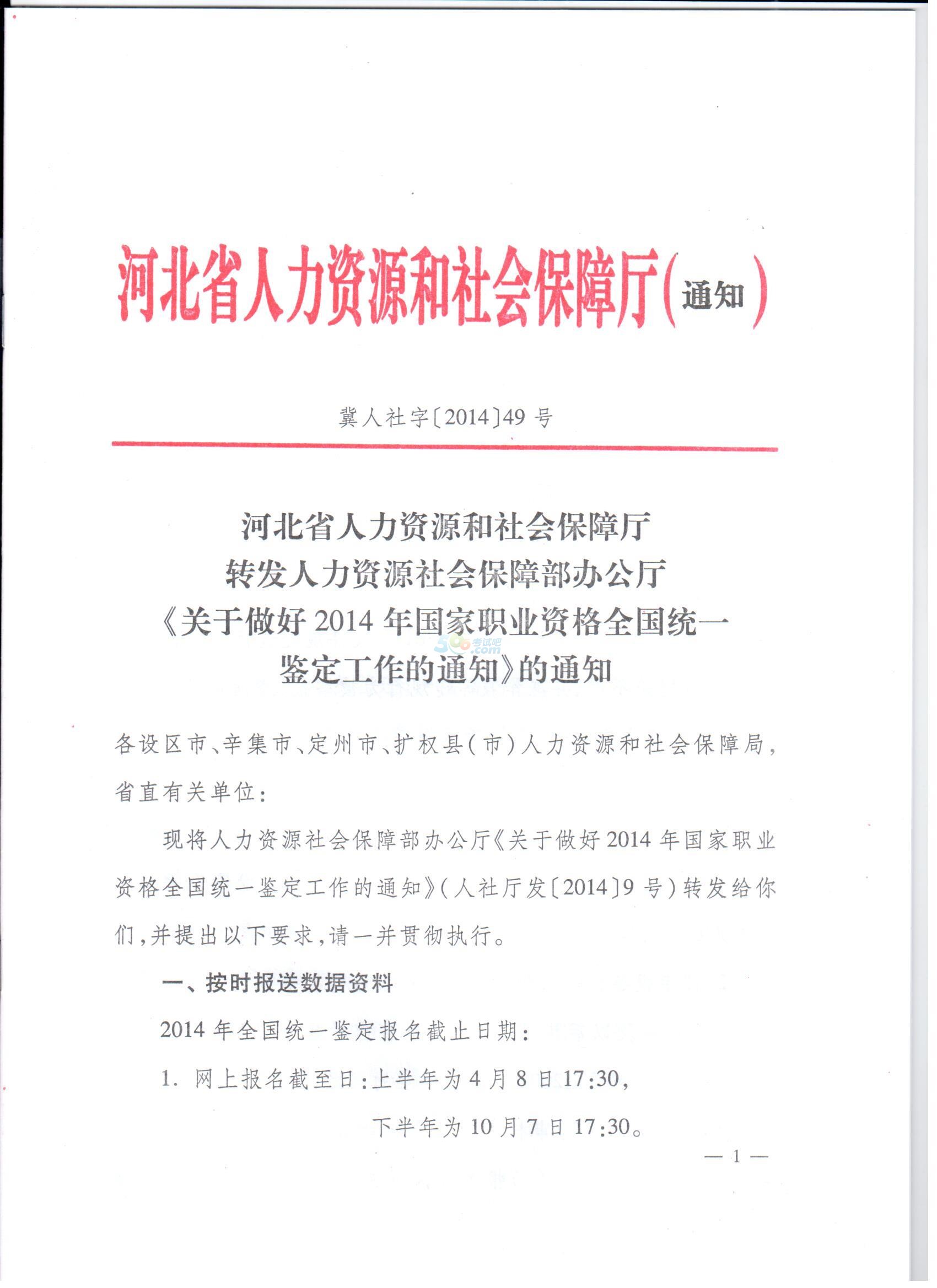 附件6:關于做好2014年國家職業資格全國統一鑒定工作的通知(人社廳發【2014】9號)